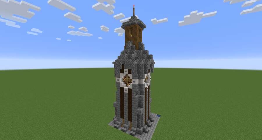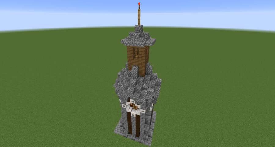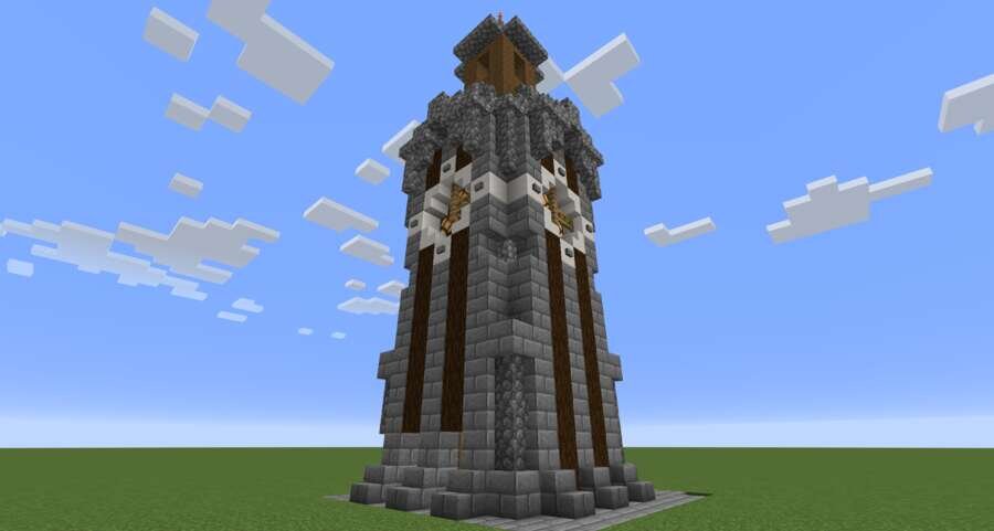 Многие обосновываются именно в деревушках и начинают обживать их в Майнкрафт. Чтобы сделать этот процесс круче, удобнее и интереснее, предлагаем это здание.Башенка сделана в деревенском стиле. Больше всего там Камня, Дерева и других базовых блоков. Это позволит все построить прямо во время выживания.