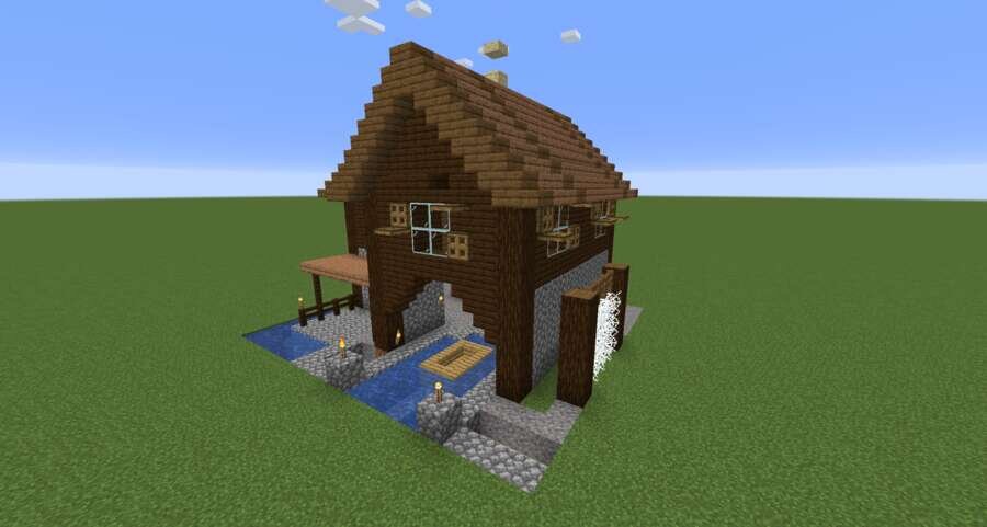 Среди игроков есть те, кто любит селиться прямо рядом с водоемом. Обычно такие пользователи промышляют и рыбалкой, поэтому предлагаем такой домик для Майнкрафт.Постройка выполнена в виде домика-причала для рыболовли и выживания. Внешне все строго, аккуратно и красиво. Внутри игроков ждет уютное убранство в 2 этажа.