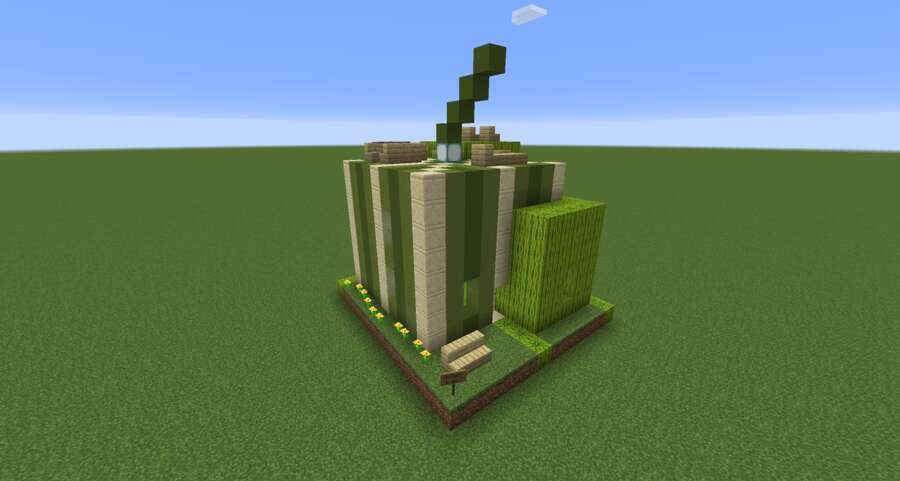 Большая часть домов в игровом мире смотрятся примерно одинаково и очень скучно. В такие моменты хочется использовать что-то более уникальное и красивое для игры.На этот раз игроки смогут поселиться в очень красивом домике в виде огромного арбуза. Рядом есть небольшая пристройка, без уникальных моментов.