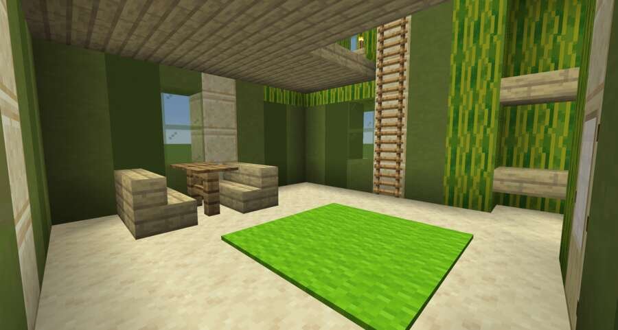 Внутри постройки парочка этажей, ничего лишнего нет, кроме базовой мебели.