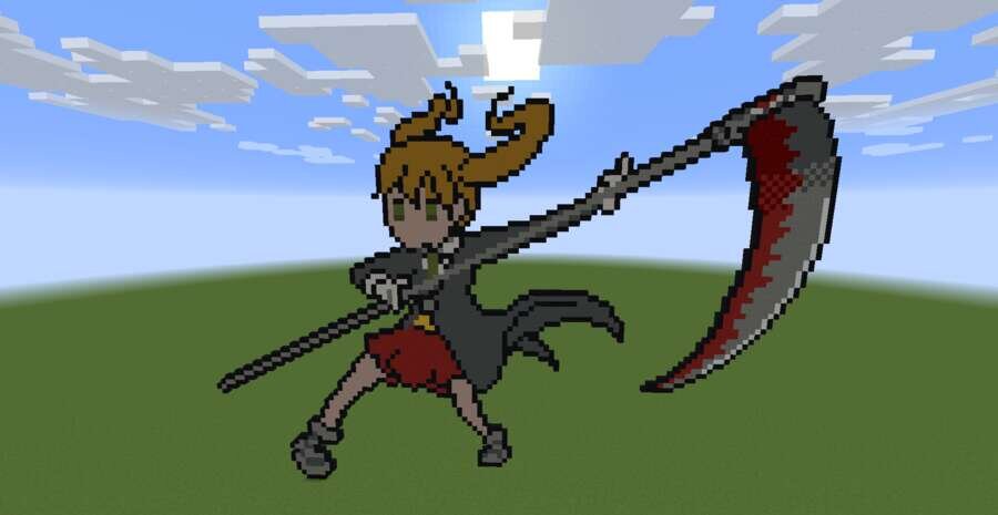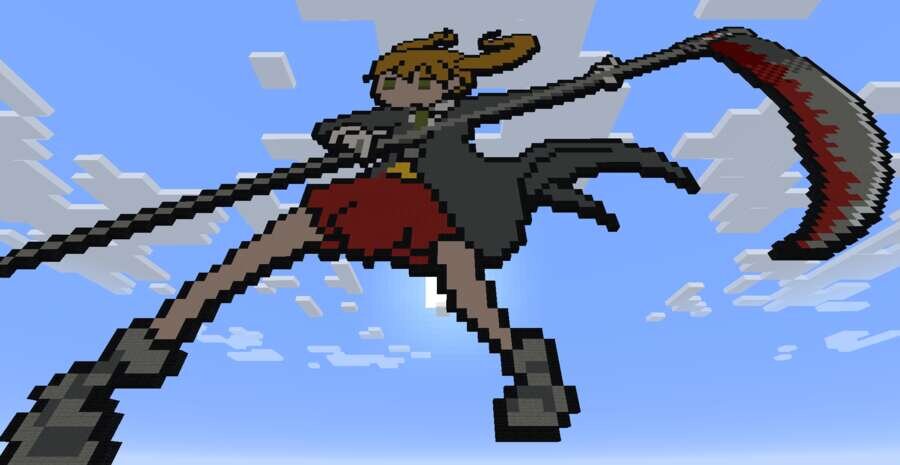 Многие персонажи из разных аниме стали легендами в своем роде. Аниме Пожиратель душ тоже относится к этой категории. Поэтому предлагаем воздать должное с новой постройкой.Предлагаем большой пиксель арт с девушкой в мультяшном стиле. Все выполнено качественно и в меру красиво, но без излишеств. Такая постройка станет отличным украшением практически для любого игрового мира.